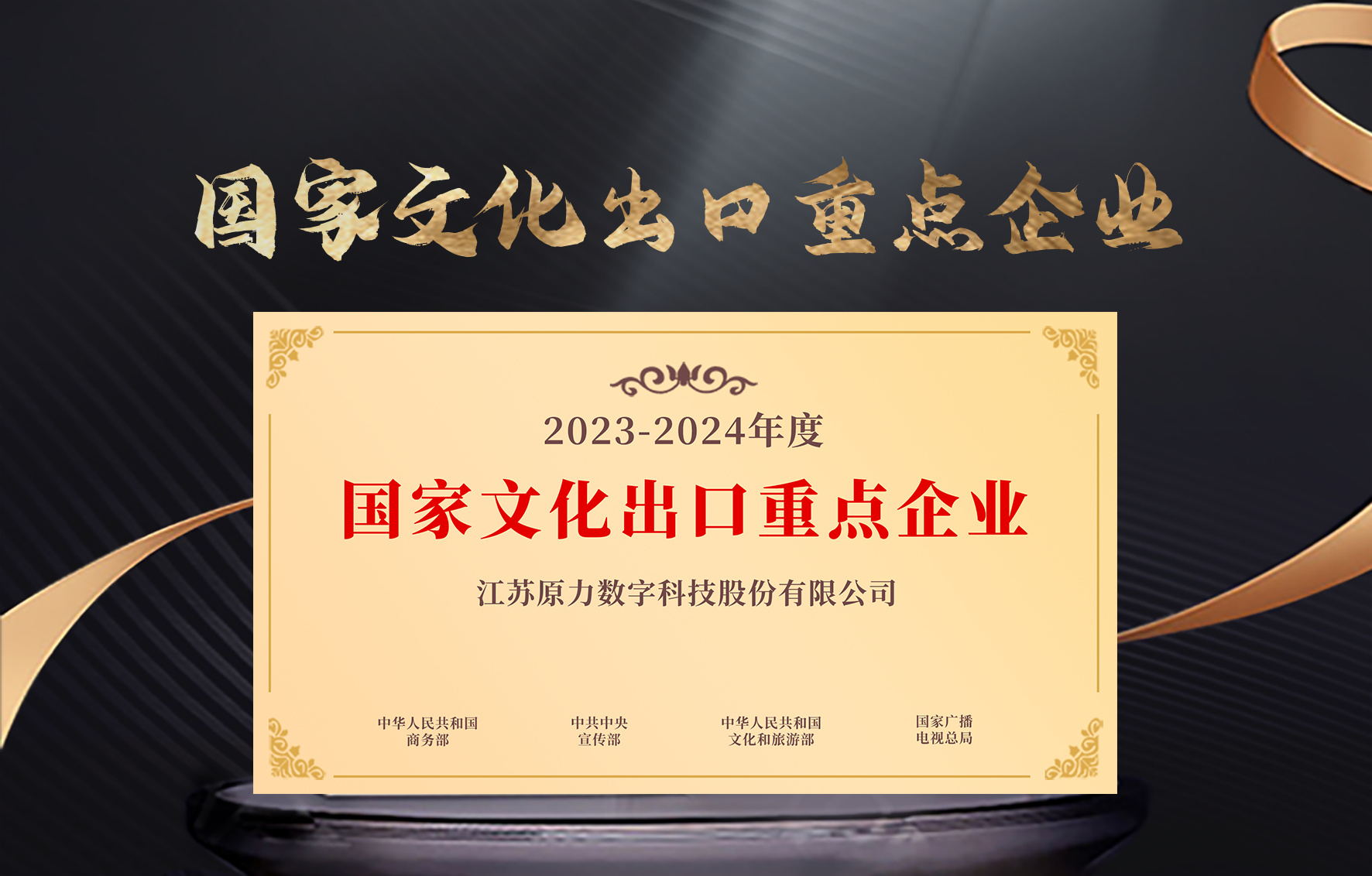 原力再摘国字号牌匾,连续第六届入选“国家出口文化重点企业”。